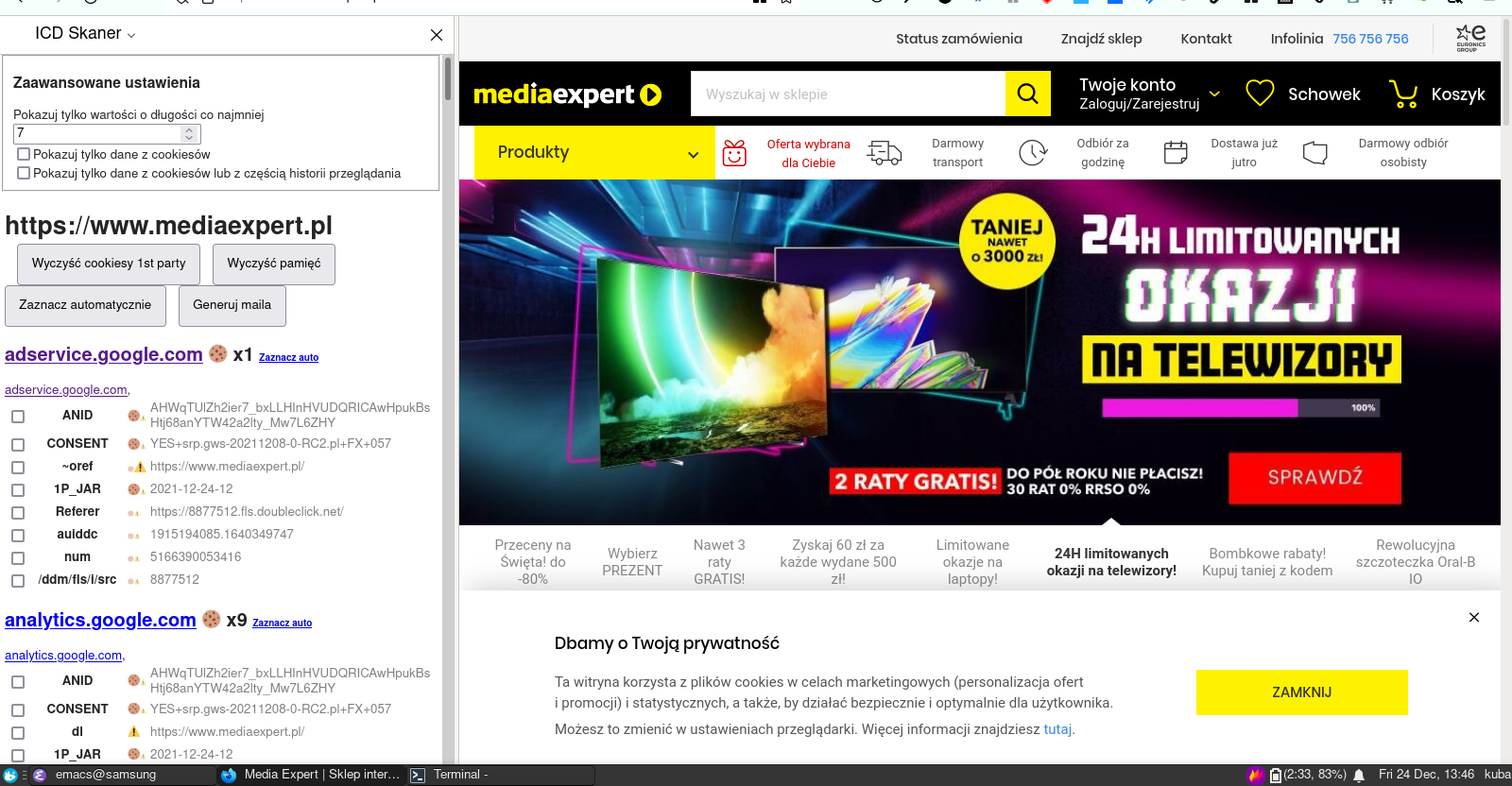 🇬🇧 Rentgen is a Firefox plug-in that automatically visualizes what data has been sent to third parties by the sites you visit. It allows you to generate a report or the content of an email that can be sent to the site administrator and/or the Office of Privacy and Data Protection. ⸺ 🇵🇱 Rentgen to wtyczka dla Firefoxa, która automatycznie wizualizuje, jakie dane zostały wysłane do podmiotów trzecich przez odwiedzane strony. Pozwala wygenerować raport lub treść maila, który można wysłać do administratora strony i/lub UODO.