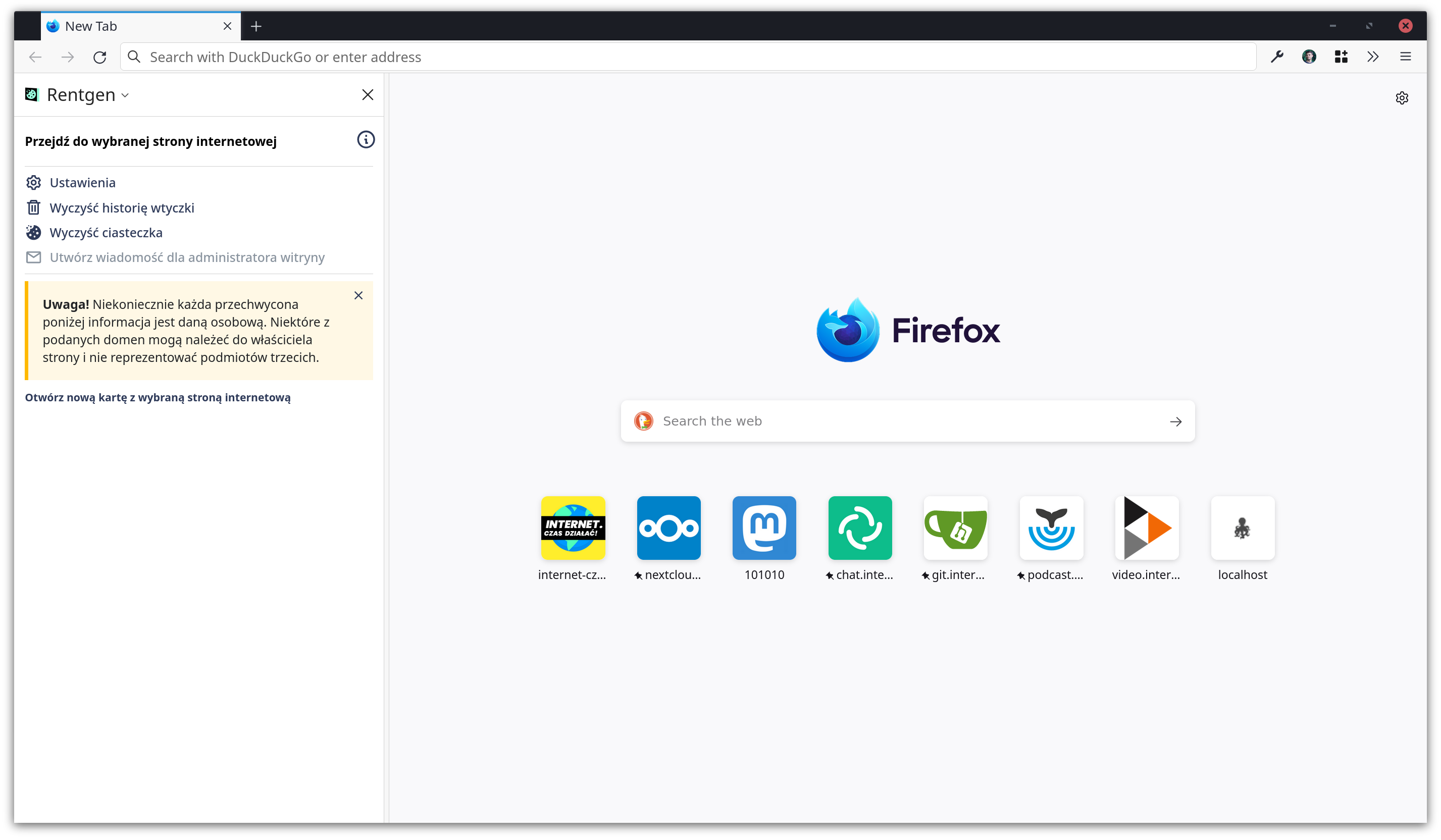 🇬🇧 Rentgen is a Firefox plug-in that automatically visualizes what data has been sent to third parties by the sites you visit. It allows you to generate a report or the content of an email that can be sent to the site administrator and/or the Office of Privacy and Data Protection. ⸺ 🇵🇱 Rentgen to wtyczka dla Firefoxa, która automatycznie wizualizuje, jakie dane zostały wysłane do podmiotów trzecich przez odwiedzane strony. Pozwala wygenerować raport lub treść maila, który można wysłać do administratora strony i/lub UODO.