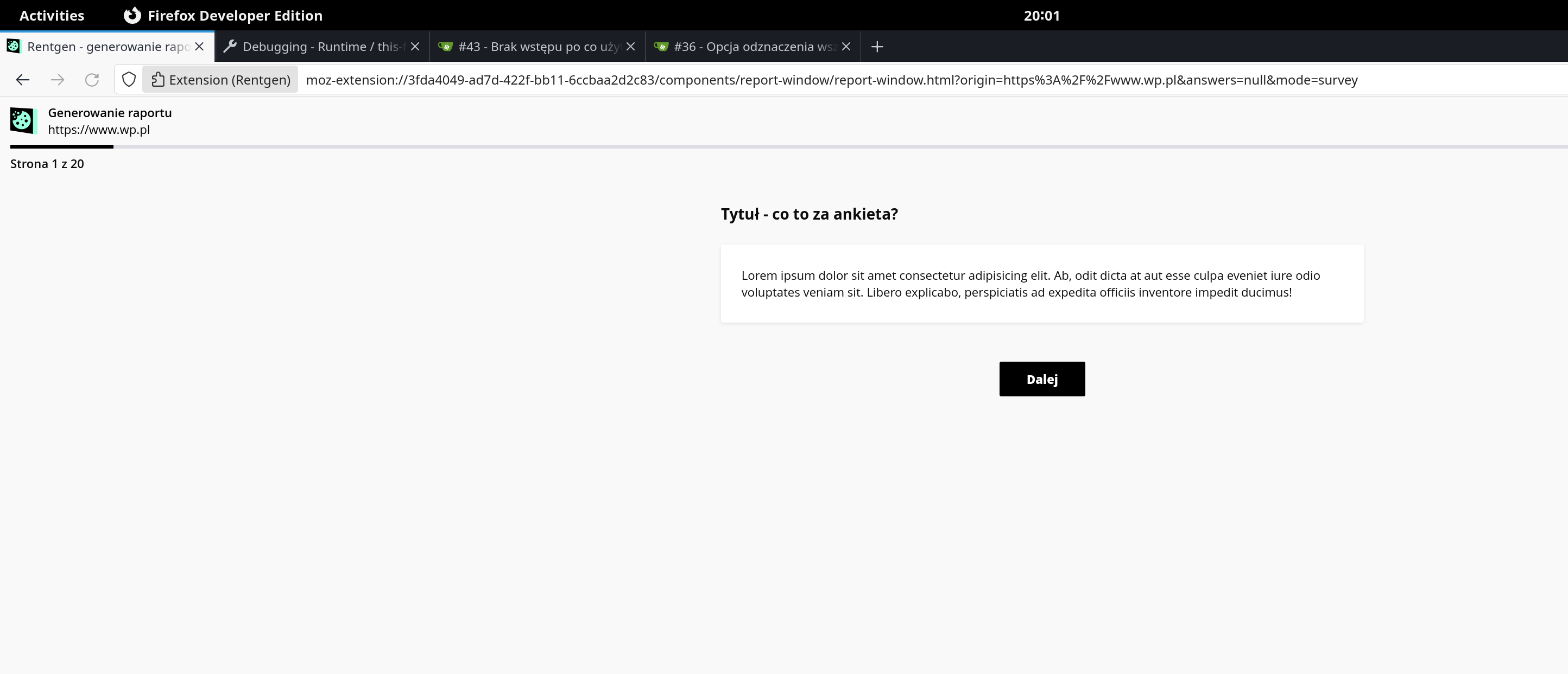 Brak wstępu po co użytkownik wypełnia surveya #43