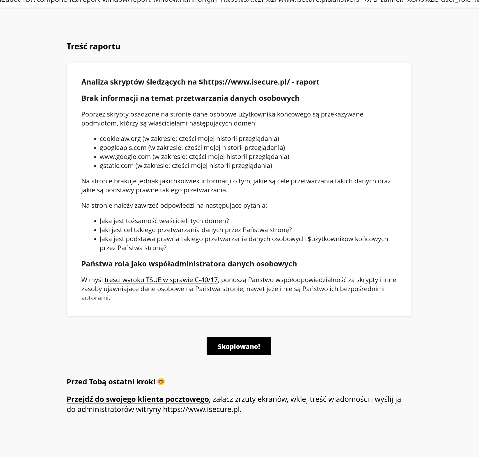 Do wyrzucenia notatka informacyjna o wysyłaniu maila kiedy jesteśmy administratorem