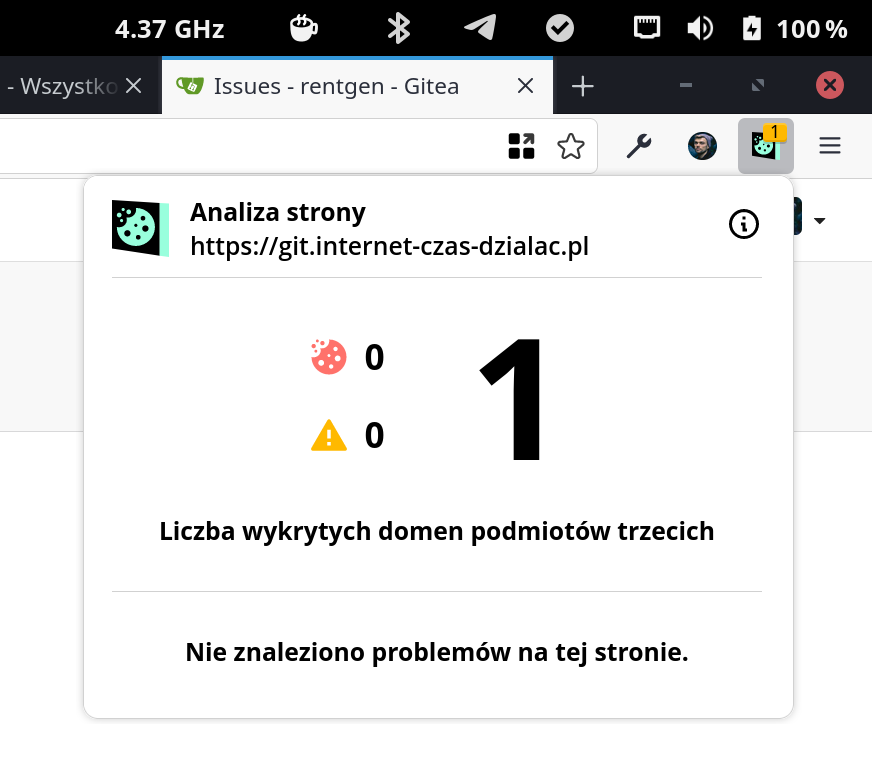 Przykładowa sytuacja, wykryto domenę podmiotu trzeciego, ale nie jest to domene dla której znaleziono problemy. Moglibyśmy wtedy wyświetlać licznik np. na białym tle.